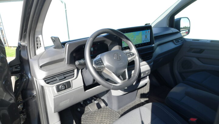 Hvordan kører den elektriske Transporter så. Som tidligere med el-biler, er det tydeligt, der ligger en betydelig vægt gemt midt under bilen. Den højere egenvægt hænger sammen med batterierne, og det giver lidt ekstra kørekomfort med tom vogn, igen helt som forventet, og herfra er det klassisk varebil.